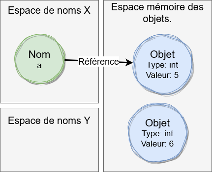 objet de type int peut avoir la valeur 5, ou s'il est de type str il peut avoir la valeur "Bonjour.