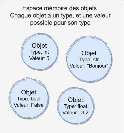 Chaque objet a un type, et une valeur. Le type détermine les valeurs possibles que l'objet pourra avoir, par exemple un