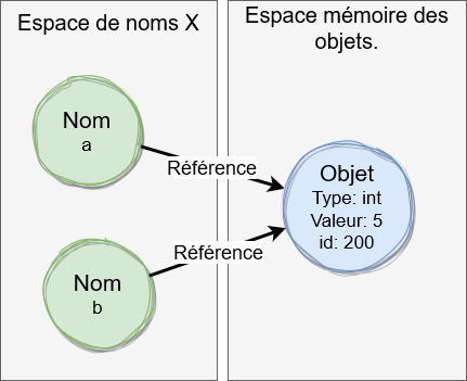 et à gauche sont le même objet, False sinon. Dans l'exemple suivant on a deux identifiants a et b qui référencent