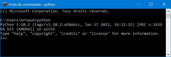 la commande python d'être reconnue dans la console de Windows. Si cette option n'a pas été cochée lors de l'installation vous pouvez