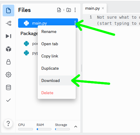 votre repl, ou télécharger tous vos fichiers du repl en une seule fois dans un fichier compressé .zip.